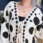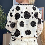 • Détails : Broderies noires en motif floral façon crochet – ultra originales pour un look qui ne passe pas inaperçu.