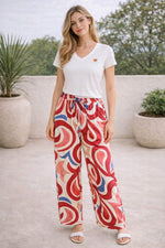 ✨ Pantalon large très confortable avec taille élastique et lien à nouer.