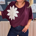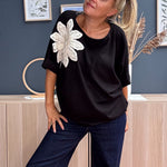 Pull T-shirt fleur crochet 🌼 – 4 coloris
