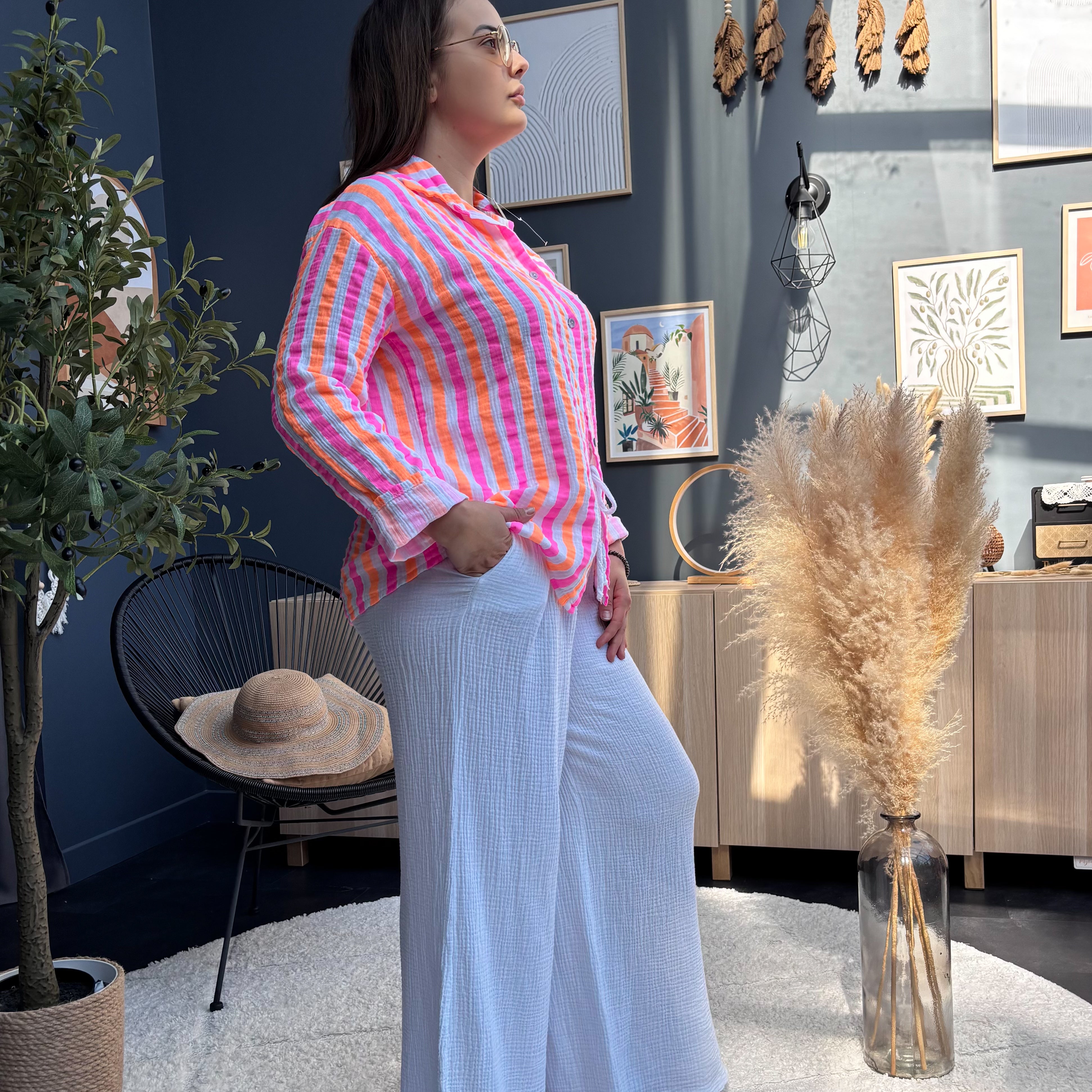 À associer avec des baskets blanches pour un look décontracté, ou des bottines et une ceinture en cuir pour un style plus affirmé.