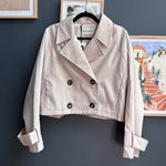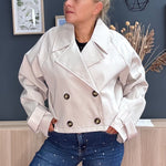 • Détails : esprit trench revisité, col tailleur, double boutonnage, manches longues avec patte décorative